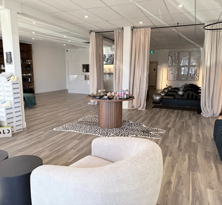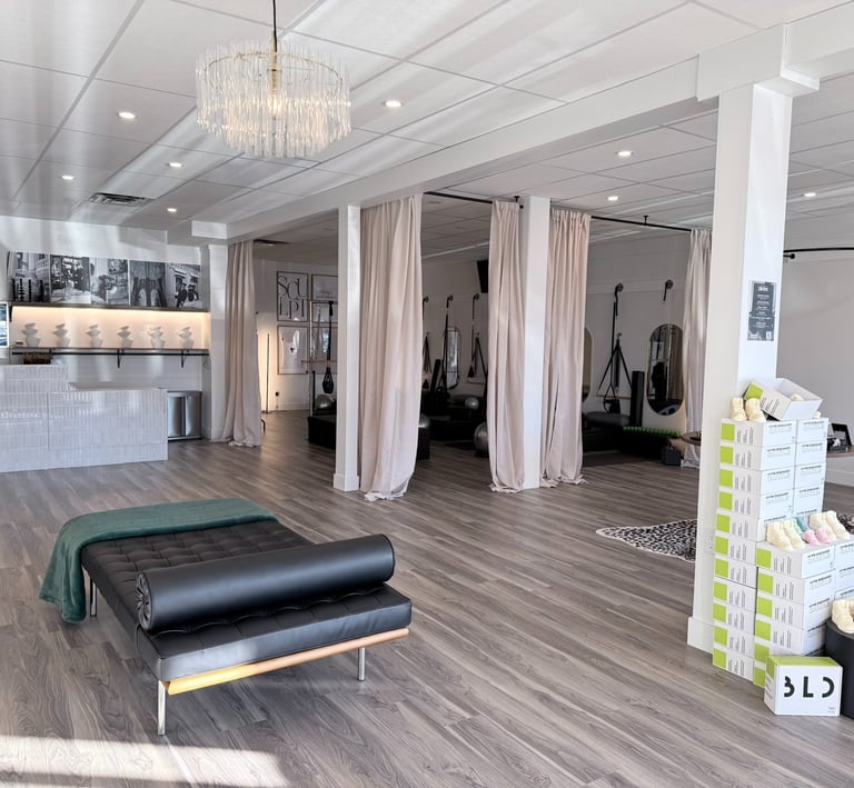 Pilates, therapeutic treatments, and local vendor products all in one welcoming space.